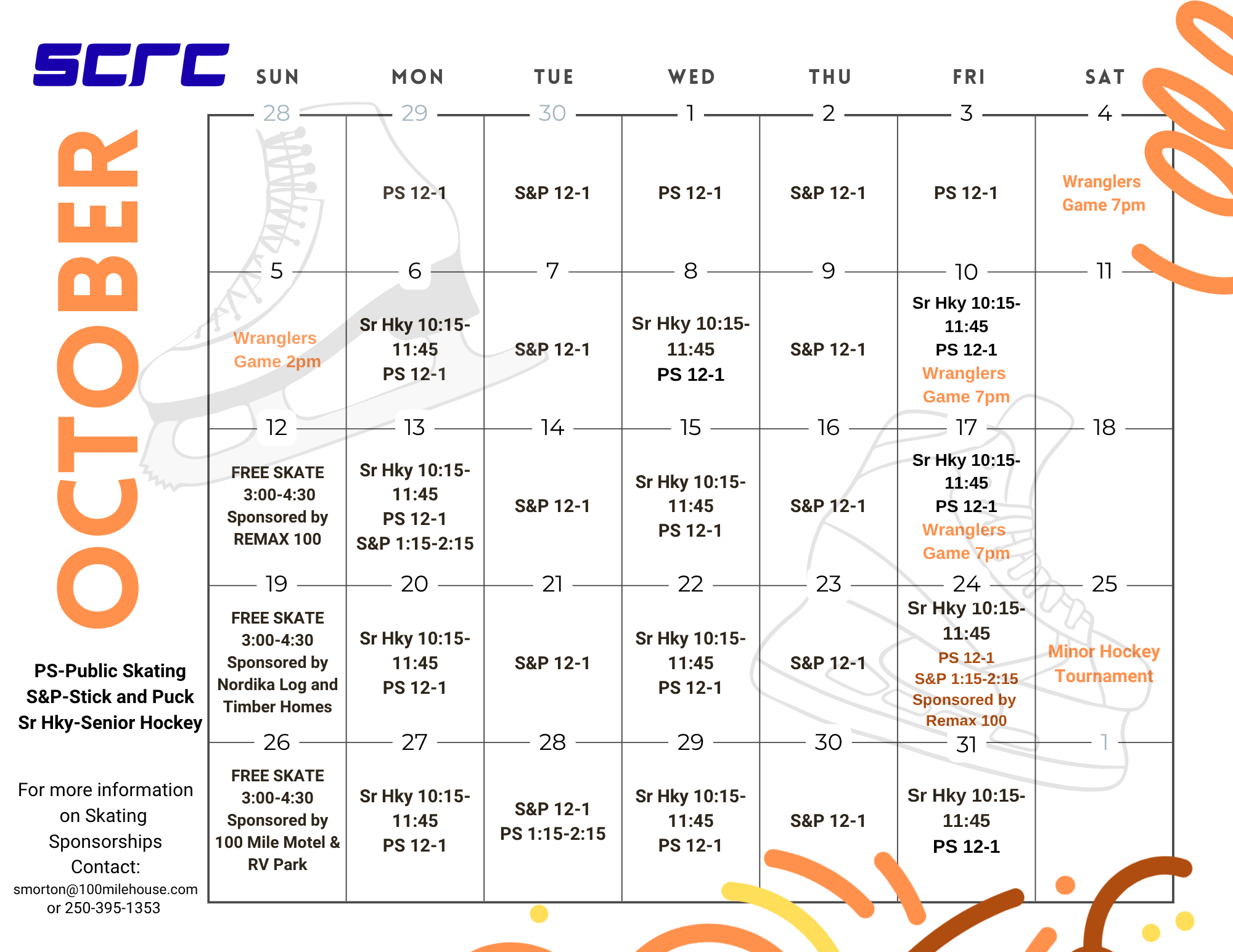 The Public Skating Schedule begins in September and runs until March.